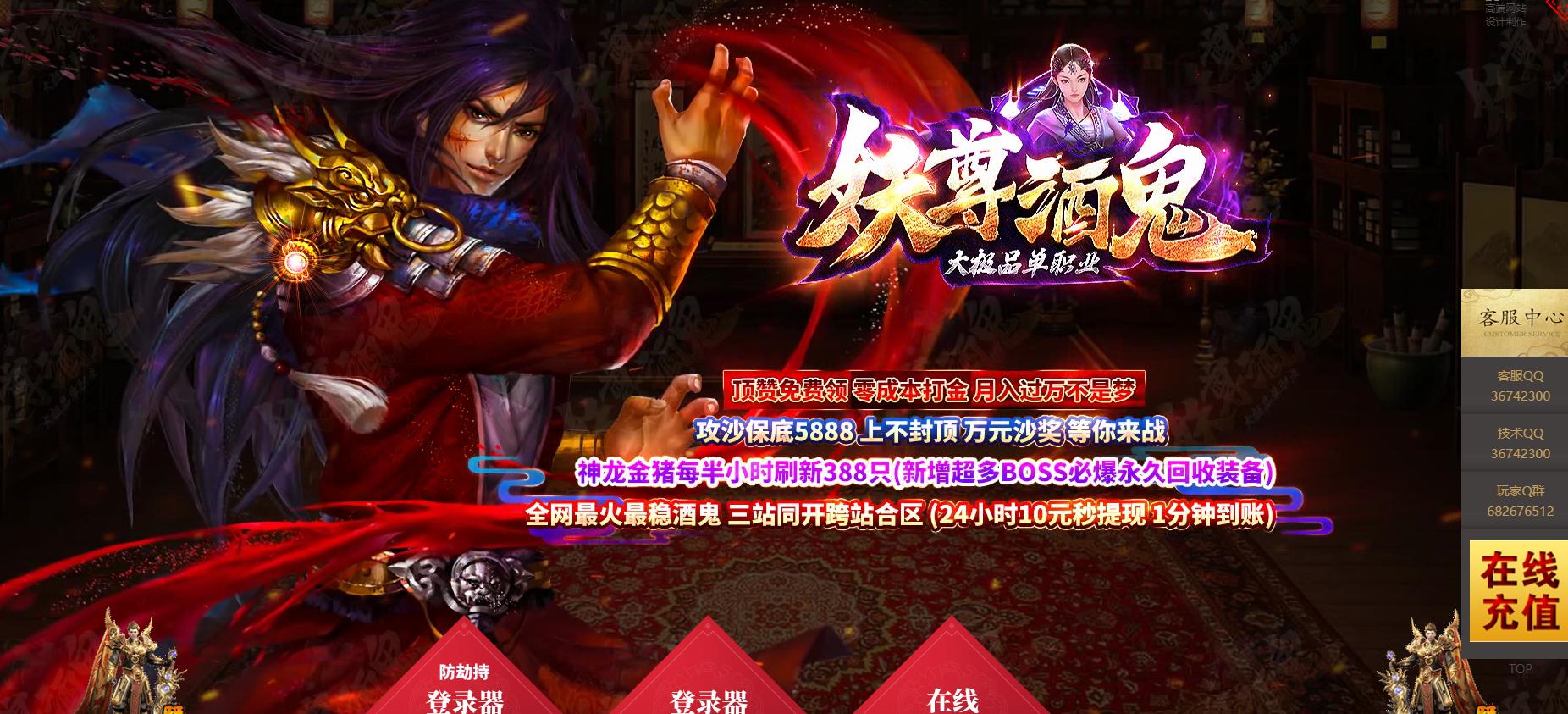 | 新人上线第一步,点击群礼包,输入兑换码888888兑换初级时装+群毒+魔法盾+人物9转+超级会员等。 土城找到免费回馈NPC,领取10级技能+斗笠盾牌勋章套+80级等级卷+满切割+1.3倍攻击+1.3倍爆率等. 基本就可以去地图里面为所欲为,散人核心地图野外地图,等级地图,一个一个地图慢慢混上去! RMB玩法攻略沙城捐献40元刀刀切割3倍+狂暴之力10元(建议一定要买,超高爆率跟伤害吸收,捐献的钱拿沙50%返还给玩家). 本服最高充值300元,核心充值50-100-300回馈地图.多出来的酒鬼币可以拿来捐献排行进入排行地图 人民币核心地图狂暴圣地+捐献圣地+富豪地图+回馈地图以及后期所有高级地图(本服所有装备打怪获得) 100元回馈:龙吟上三刀刀麻痹+龙吟下四+觉醒宝石隐身四件套+50%怪物鞭尸+50+100的回馈地图爆率超级高 装备核心攻略上三为斗 盾 章 土豪强烈推荐合成,刀刀麻怪,新手上线就撸BOSS,章为倍攻 盾为复活 斗笠为攻速. 本服除了上三,其他的装备全部打怪获得,无任何合成,所有玩家都看脸,决无任何坑爹隐藏消费. 散人不充钱也可以回收装备,回收币,回收酒鬼令,合成上三,小怪也有可能爆终极,只要你有时间. 新闻】充值比例:元宝1:100000 酒鬼币:1:10000 (多充多送) 【新闻】游戏特色:会员免费送,全网BOSS最多酒鬼,打架超级爽,地图超级多(不捐献排行一样混的超好) 【新闻】合区介绍:开区后第二天下午4-5点合区,沙城奖励保底5888元上不封顶(指挥也有现金奖励)!!! 特色核心攻略还在玩捐献富豪酒鬼版本吗?你已经落伍了! 此版本专为散人设计,任何地图BOSS都刷的比较均匀(BOSS刷超级多),千倍万倍(小怪)爆率超级高 新手玩法攻略