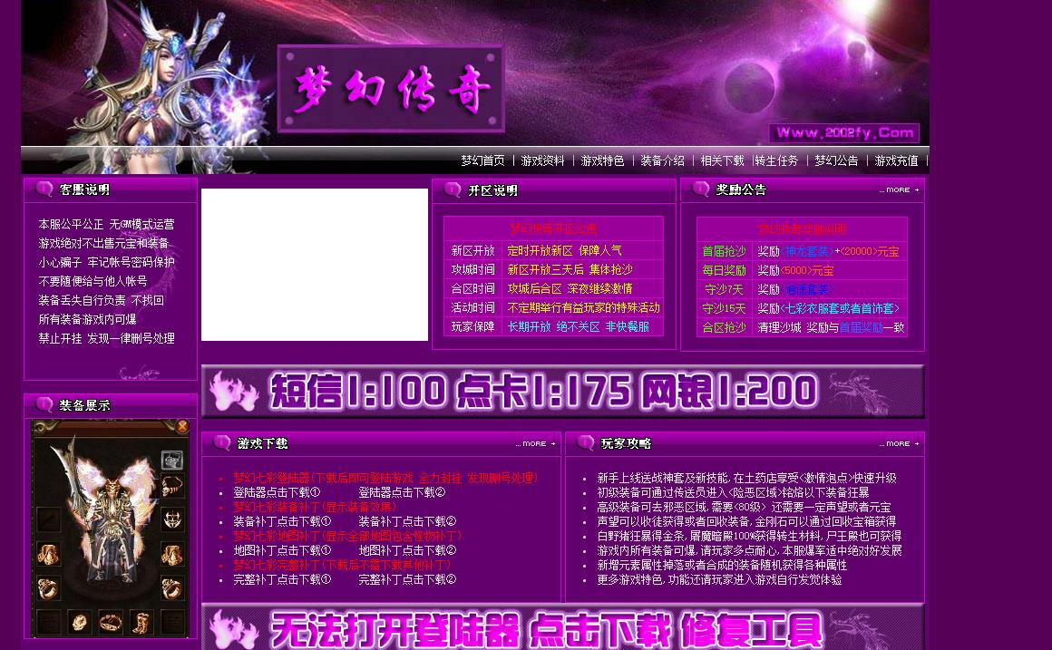 新手上线送战神套及新技能,在土药店享受<激情泡点>快速升级 初级装备可通过传送员进入<险恶区域>铭烙以下装备狂暴 高级装备可去邪恶区域,需要<80级> 还需要一定声望或者元宝 声望可以收徒获得或者回收装备,金刚石可以通过回收宝箱获得 白野猪狂暴得金条,屠魔暗殿100%获得转生材料,尸王殿也可获得 游戏内所有装备可爆,请玩家多点耐心,本服爆率适中绝对好发展 新增元素属性掉落或者合成的装备随机获得各种属性 更多游戏特色,功能还请玩家进入游戏自行发觉体验