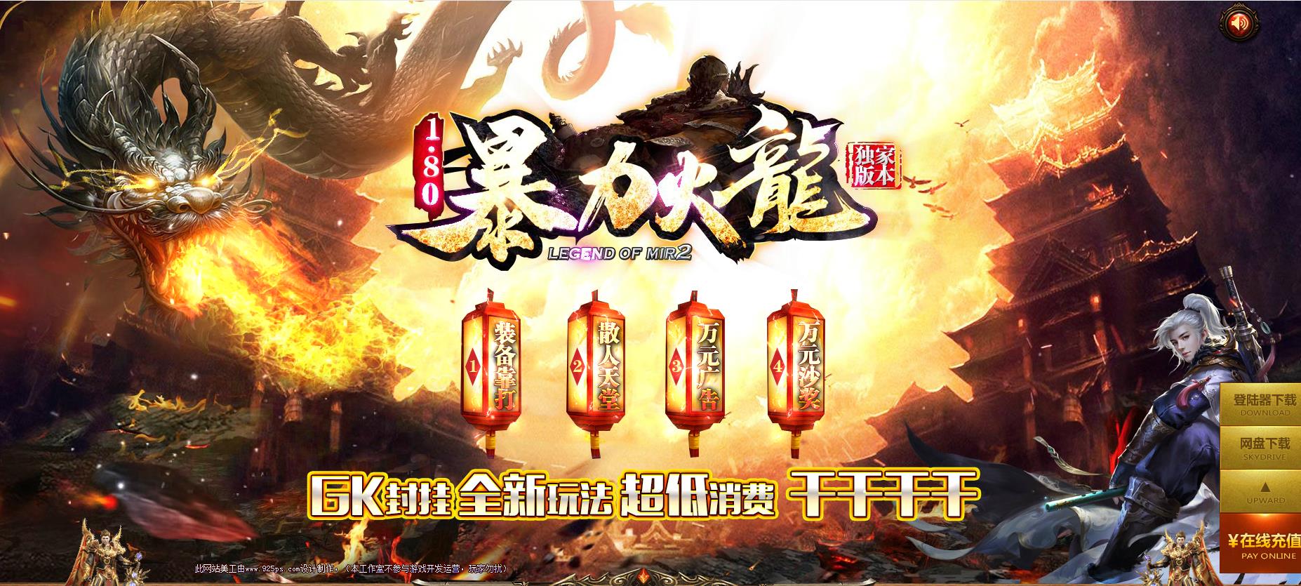 元宝比例: 1元=100000元宝+100币+10点荣誉+50积分.网银多送100%! 攻沙介绍:新区开放第二天下午合区、晚上统一攻沙,不如错过 版本介绍:每天稳定开放9个区,区区火爆。第二天跨服拿沙,最低沙奖3888RMB 版本介绍:散人一小时可打99999999999999999999999999亿元宝 版本介绍:一刀9999999999999999999激情9999999999999999999