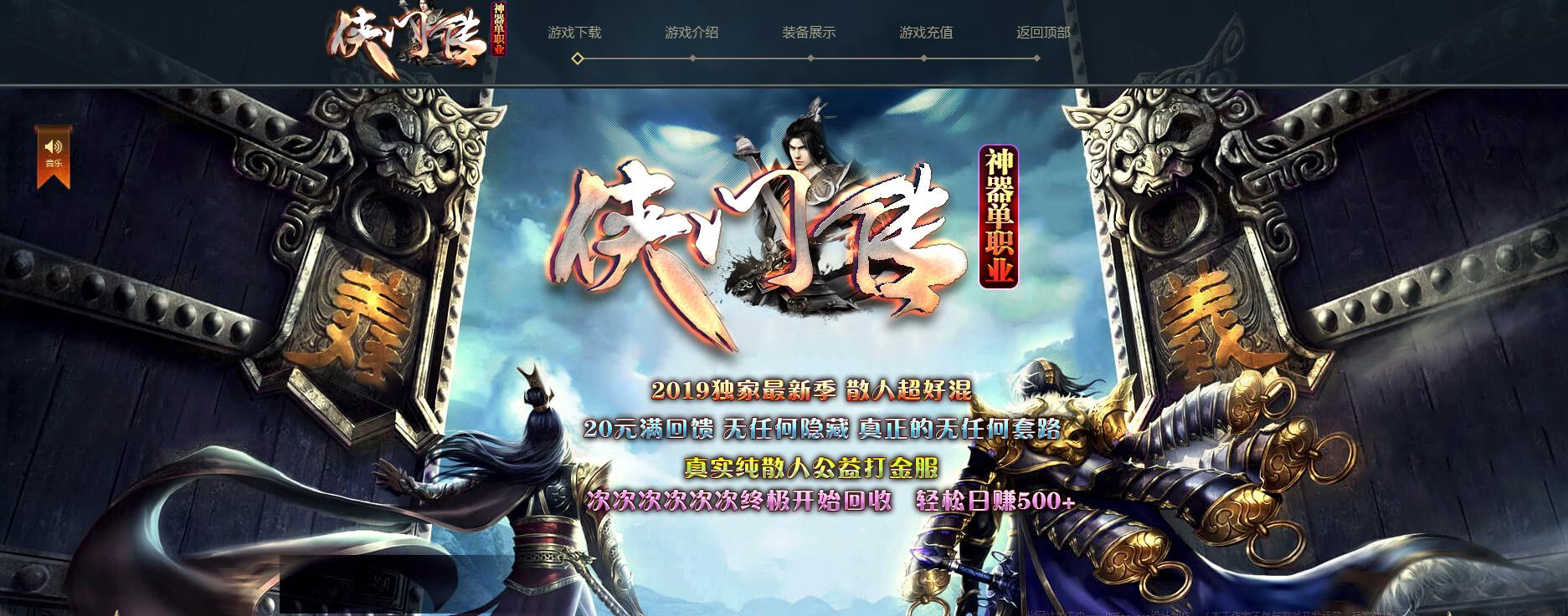 | “侠门传说”重燃你的热血.续写你的传说.独家新版.邀您体验 [RMB比例] RMB比例1:1,货币1=1万元宝100砖石1000侠币所有冲值走网站,无任何比例 [版本介绍] 全网独家单职业版本 全新体验 全新玩法 长久稳定 [提现无忧] 满100随时提现 绝不拖欠 玩家交流群:228382580 [开区介绍] 每天开放四个新区10,14,18,22 单区万元广告 绝对火爆 绝对激情 [游戏介绍] 所有地图全部刷新圣兽BOSS 所有装备全部靠打 只要努力一切皆有可能 [游戏介绍] 优化野外地图 散人地图同样刷新高级BOSS 散人一样逆袭 [游戏封挂] 最高端定制封挂系统 万元定制封挂网关 公平长期服 [本服特色] 盾牌带切割,20元满回馈,全网独家鞭尸系统 [限时奖励] 超多限时奖励,到合区结束.帐号永久保值,可兑换新区充值