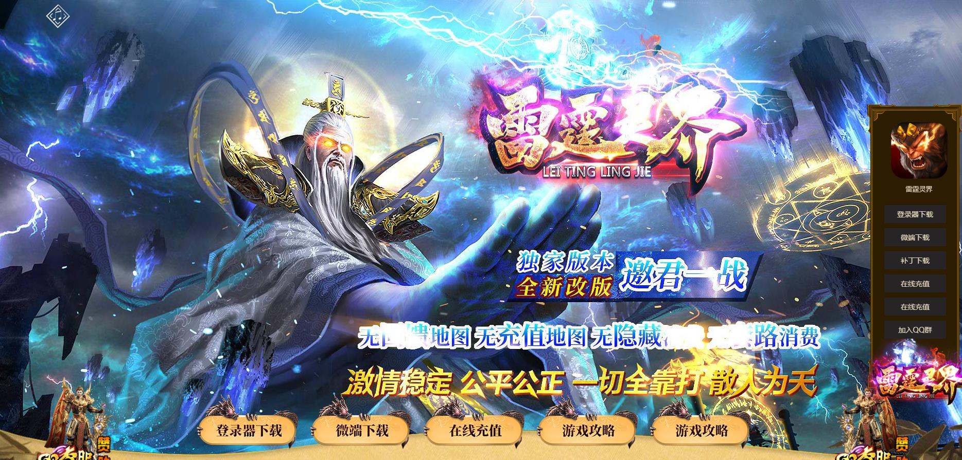 | 【版本介绍】:|2019年最新“雷霆灵界·单职业”重金广告人气火爆.无元宝充值.一切靠打 【开区介绍】:|每天稳定6个新区:00:00 10:00 13:30 16:30 19:30 22:30 【游戏忠告】:|开挂脱机、加速、使用任何辅助等,不管充值多少一旦发现直接处理 【装备暴率】:|所有怪物都能爆终极,爆率在于自身的爆率倍数和刷怪数量. 【攻沙合区】:|开区第二天下午15:00左右合区,晚上20:00拿沙! 【沙城奖励】:|简单 粗暴 激情 耐玩 合区拿沙千元现金红包等你来拿. 【版本介绍】:|用心做服,做良心服,长期稳定开放,玩快餐的绕路 【散人逆袭】:|散人上线首先领取群礼包,打材料升级和转生尽快提升至后面大陆 【限时首爆】:|首爆奖励上千件!各种神器数不胜数!自由搭配!玩法新颖. 【外挂警告】:|开挂脱机、加速、使用任何辅助等,不管充值多少一旦发现直接处理 【官方平台】:|雷霆灵界·单职业正版MAX刀速2000人群.