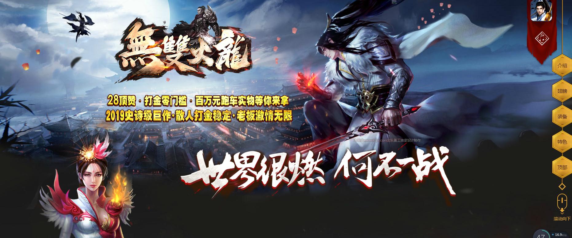 游戏模式采用普通传送-秘境传送-大秘境传送-世界传送模式! 充值比例《RMB点1:1 火龙币1:100》 网银赠送100% ,点卡赠送100% 游戏玩法一切装备靠打,只售会员,所有物价玩家自定 地图介绍地图定义为三大章.第一章普通地图.第二章秘境地图.第三章世界地图 第 一 章盛大地图,产出一星~五星装备,觉醒材料,法宝铸造材料等! 第 二 章秘境地图,产出十二生肖、法宝系列:所有装备.重点提示:boss爆率是小怪的10倍 第 三 章世界地图,产出铸魂、十二生肖、法宝系列:所有装备.重点提示:boss爆率是小怪的30倍 沙城奖励首次攻沙奖励微信红包888一10000 关于封挂定制封挂插件,封杀市面99%外挂,漏网之鱼举报查实,直接封号!