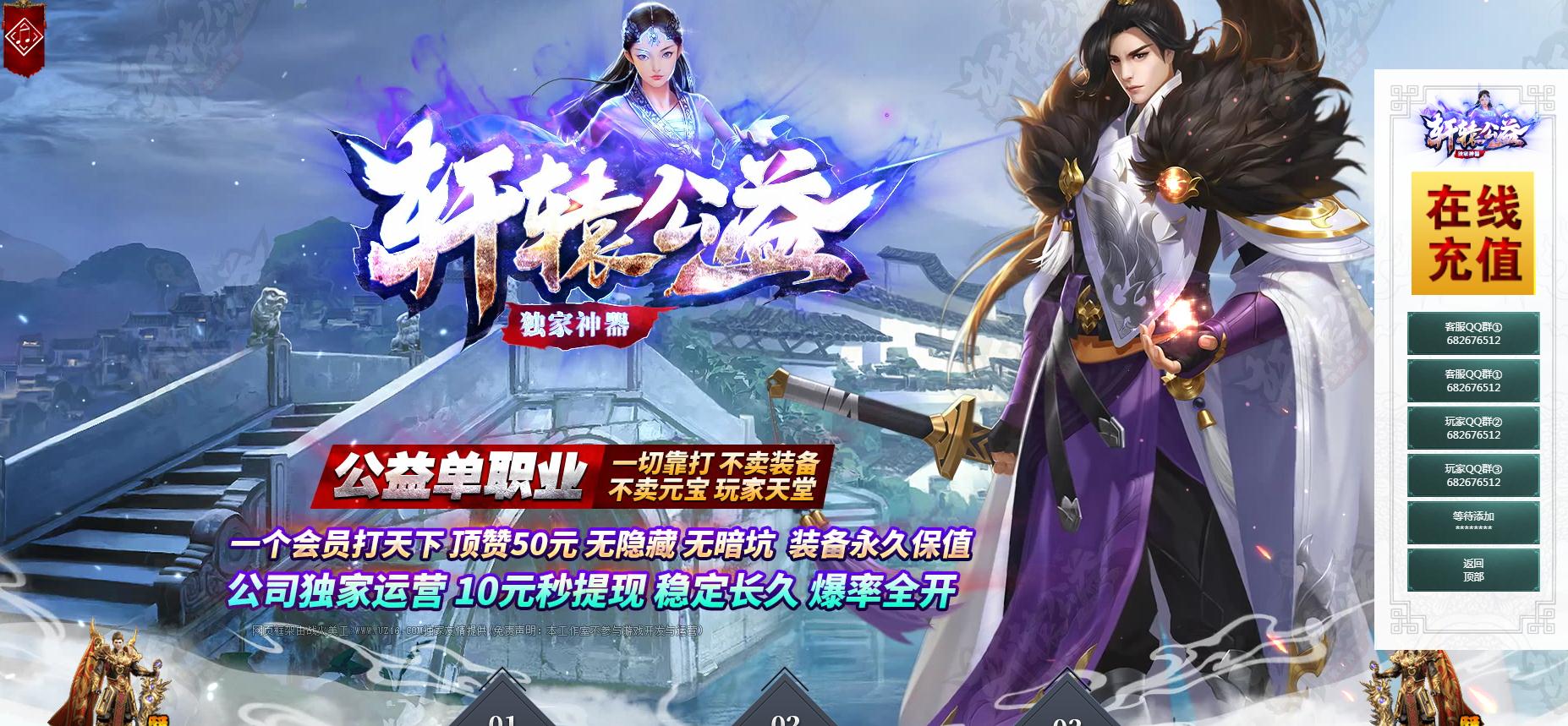 游戏具体内容介绍: 关于宠物:新人上线赠送一级宠物 后面去各个地图打怪物爆兽草- 免费升级 关于斗笠:新人上线赠送一级 玩家打够金币即可升级 最后4阶只能打怪爆出无合成 关于血石:新人上线赠送一级 玩家打够金币即可升级 最后4阶只能打怪爆出无合成 关于勋章:无合成 游戏打怪获得 终极勋章附带神技:魔法盾 【真正一切靠打 散人天堂】 关于盾牌:无合成 游戏打怪获得 终极盾牌附带神技:十步一杀 【真正一切靠打 散人天堂】 关于时装:无合成 游戏打怪获得 终极时装附带神技:强力减伤 【真正一切靠打 散人天堂】 关于称号:只需要金币+称号证明 游戏获得 充值无赠送 【真正一切靠打 散人天堂】 关于转身:只需要金币+转生精华 游戏获得 充值无赠送 【真正一切靠打 散人天堂】 关于魔戒:本服唯一可以开区直接充值金元合成的物品 属性强大NPC查看 【维持服务器运转】 关于玉佩:本服唯一可以开区直接充值金元合成的物品 属性强大NPC查看 【维持服务器运转】 怪物 本服10W年以上怪物(包括10W年) 就可有几率爆出本服所有装备 绝对真实 提现 本服增加装备永久回收 让物价稳定 实物奖励让大家娱乐之余 也能赚生活费 游戏攻略: 狂暴属性:人物血量 蓝量 暴涨20% 杀怪爆率提升50% PK爆率提升50% 切割+150000 另外赠送永久切割+5000 散人攻略: 充值10或者打限时攒够10RMB点开个狂暴 即可进入野外地图打 装备限时 BOSS 首杀 小资攻略: 充顶赞会员50块钱金元 领取终极宝宝 即可下地图 狂虐怪物 RMB玩家攻略 对于不缺钱的老板上线土城左上角 合成魔戒+玉佩310块钱的金元 也是本服唯一维持服务器的费用 打怪效率翻倍 有专属地图 属性强大NPC查看 对于本服的玩法,仔细给大家介绍下,如果是散人玩家,先去野外打点基础装备,等级丹或转生材料把等级转生升上去,去高等级地图打或者转生,优先升级魔戒玉佩,增加打怪效率, 升满了也就可以下魔戒玉佩地图狂撸BOSS了,本服无充值坑爹地图,有时间一样可以下所有地图 对于不缺钱的老板玩家,上线开通会员,捐献,狂暴升满魔戒玉佩,等于(魔戒玉佩310)+会员(50)狂暴捐献(30)先去会员地图打点装备, 达到50万左右血就可以去魔戒玉佩专属地图,仙魔界撸BOSS了,永久出的几率很高,具体细节游戏体验。 隐藏副本 : 本服一大路 二大陆 都会出现随机隐藏副本 是一个水晶样子的NPC 随机刷新 几分钟更换次坐标 遇见了进去打就对了 爆一切 【真正一切靠打 散人天堂 装备保值】 【本服:长期 稳定 公平 公正 散人打金 土豪激情】 【本服绝无任何隐藏-简单明了-易上手-让大家脱离市面上的坑服】 爆率明明白白 清清楚楚 大家别放过任何怪 生肖是任何乖都爆 开放所有装备·爆···爆····爆 然后就是-激情 -激情-激情 总之一句话 第一季 一切靠打 低消费