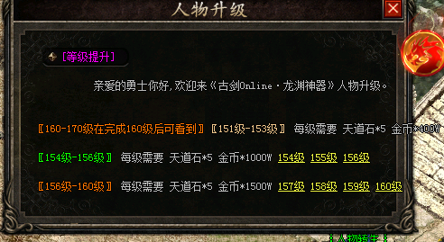 | 每个传奇游戏中都拥有一些特殊存在的游戏设定,这些设定能够给与玩家带来一定全新的游戏体验,这种游戏模式是我们在很多游戏中不曾体验过的,而今天这个英雄专属的游戏设定就是不错的游戏模式存在,这些英雄专属的游戏装备属于游戏中的特殊装备,在该传奇的游戏中我们可以通过个人装备栏中的生肖神装来完成装备的获取,让我们体验到更多的游戏激情和乐趣,这样的游戏设定相信很多玩家都会喜欢,在该传奇的游戏里面一共拥有12件英雄装备,每个装备能给我们带来的属性都是不同的,想要获取玩全部,通过打怪的方式来获取相当的困难,所以在游戏中我们也可以在该NPC处选择装备合成来进行英雄装备的获取,每件装备需要使用英雄碎片*5+20金币来兑换,所以想要获取全部的英雄装备,各位还需多加努力。 游戏中的各位想要提升自己的实力首先需要的就是不断的探索和发现,在这种发现探索中我们可以感受到游戏的乐趣和激情,慢慢的积累完成的游戏提升才是我们最好的游戏提升模式,各位如果想要得到提升,那么就多加努力来完成个人的探索和游戏的体验吧,期待各位的良好发展,让自己能够更好更快的完成个人角色的提升。 等级是我们存在于传奇sf游戏中的关键所在,也是我们提升个人实力的基础属性所在,玩家在进入游戏的主要目的也就是提升个人的等级来完成更高端的游戏体验和装备的穿戴,这样的游戏模式相比各位也都是熟门熟路的。 ![]() 不过在如今的传奇游戏中各种的游戏模式也成为了我们提升个人实力和等级的关键所在,玩家如果想要在该传奇的体验中完成整体的属性提升或者是等级提升,就需要在各种地图中进行探索,这个过程是枯草无趣的,但是随着等级的提升我们可以进入更多的地图进行探索将会给我们的游戏带来一定的娱乐感,而在达到一定的等级以后我们则需要使用其他的游戏方式来完成提升,这就需要玩家到达第二大陆,在这里我们可以看到等级提升的NPC,点击在这里可以发现151-153级需要使用天道石*5加上金币*400W来进行提升。154-156级的提升需要在这里使用天道石*5加上金币*1000W进行提升,而后期的156-160级则需要使用天道石*5加上金币*1500W来进行提升。 而后期的160-170级则需要玩家在完成了160级的提升以后才能看到,所以在前期的各位玩家如果通过游戏的拓展完成了个人的等级提升,那么就可以在后期的游戏中不断的积累自己的天道石和金币的积累,以便于后期的整体游戏的提升,让自己可以获取更高端的等级提升。 |